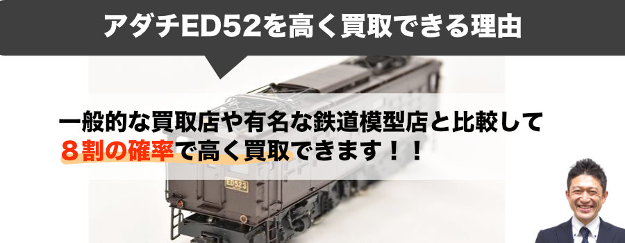 アダチ製作所は現在廃業しており、製品の再生産は一切行われていません。ED52のような真鍮製HOゲージは製造数が限られており、中古市場では入手困難なモデルのひとつです。一般的な買取店では、こうした希少性を判断する基準を持っていません。「古い電気機関車の模型」として一律に安価に買い取られてしまうケースが後を絶たないのが現状です。