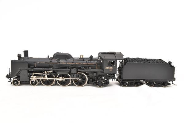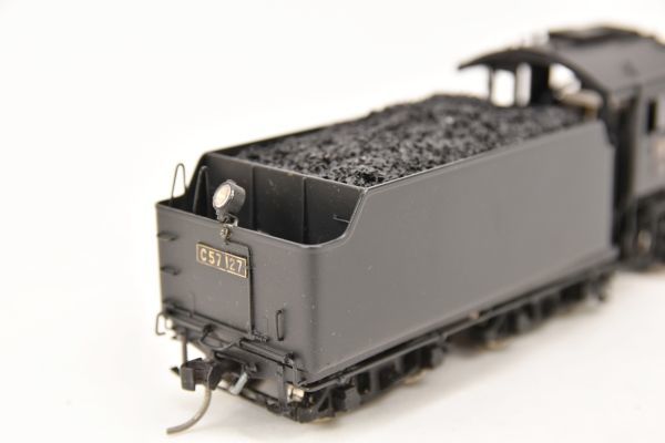 C57形の特徴的な外観——細く長いボイラー、蒸気ドームと砂箱を一体カバーで覆ったシルエット、大径ボックス動輪——はHOスケールで精密に再現されており、127号機のナンバープレートを付けた完成品は、その号機ならではの佇まいを持ちます。