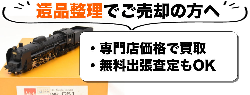 当店では、遺品整理に伴う鉄道模型の買取を丁寧にサポートいたします。製品の種類や状態が分からなくても構いません。まずは写真をお送りいただくか、お電話・LINEでご連絡ください。出張査定(関東圏を中心に対応)も承っておりますので、大量のコレクションをお持ちの場合もお気軽にご相談ください。故人が大切にされたコレクションを、その価値を理解する次の愛好家へとつなぐお手伝いを、誠実に行わせていただきます。
