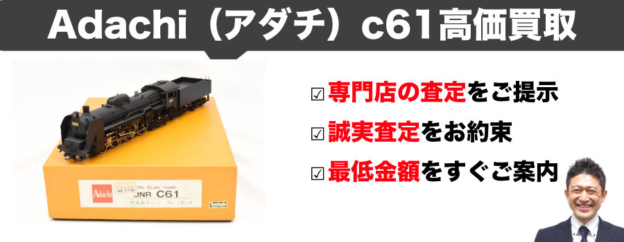 アダチ製作所のC61をはじめとするHOゲージの買取価格には自信があります!真鍮キット製品の歴史的価値、ベテランコレクター層の需要動向を正確に把握しております。一般買取店では見落とされがちな製品の真価を、専門知識を持つ査定士が適正に評価いたします。査定のみのご利用も大歓迎です。まずはお気軽にお問い合わせください。