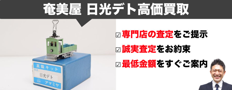奄美屋が製作した日光デトは、日本一高い場所を走った路面電車「東武日光軌道線」で活躍した電動貨車の真鍮製キットです。一般的な買取店では、路面電車の貨車という特殊な車両形式を理解できず、「値段がつかない」「買取不可」と判断されるケースが少なくありません。遺品整理業者に任せると、貴重なコレクションが二束三文で処分されてしまう恐れもあります。当店は鉄道模型専門店として、地方私鉄・路面電車モデルの価値を正しく評価いたします。