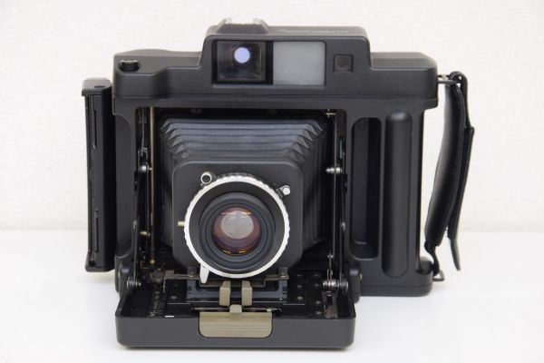 1987年発売のオリジナルモデル。Fujinon 105mm F5.6レンズを搭載した蛇腹式インスタントカメラ。完全機械式で露出計を省略することで、当時の価格を69,800円に抑えた戦略的モデルです。プラスチック主体の軽量ボディながら、5群4枚構成の本格的なレンズを搭載。状態により買取価格は大きく変動しますが、ベローズに穴がなく、レンジファインダーが正常に機能する個体は高評価の対象となります。