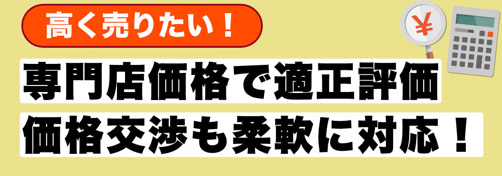 1. 中間マージンなし 買い取った商品は当店で直接販売しており、余計な中間業者を挟まないから、その分を買取価格に上乗せできます。だから一般手的な買取店と比べて8割の確率で高く買取できています。