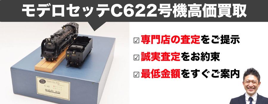 Modello Sette(モデロセッテ)C62 2号機「ニセコ」は、1/45スケール真鍮製という希少性と、C62 2号機という題材の人気が相まって、極めて高い価値を持つ鉄道模型です。過去には数十万円で販売された実績もあり、適切な評価を受ければ高額での買取が期待できます。