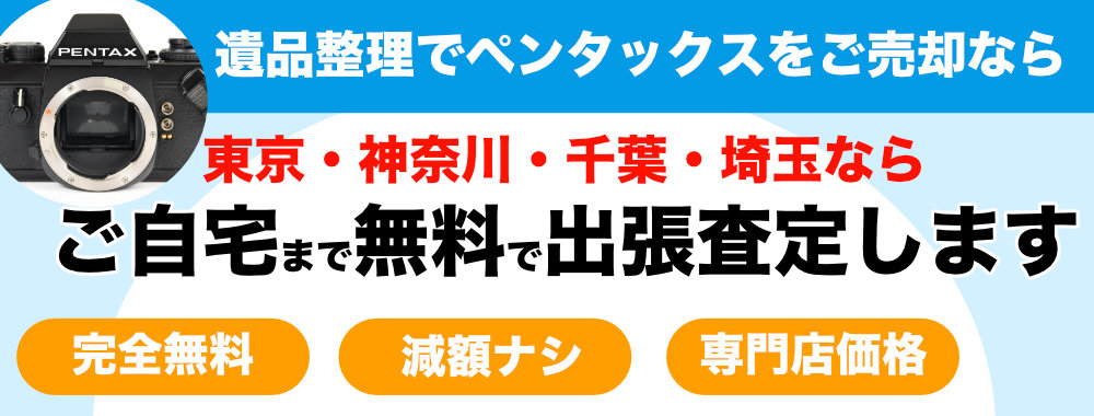 「遺品整理で見つかった古いカメラの価値が分からない」「まとめて処分したいが、捨てるのはもったいない」という方は、ぜひ出張査定をご利用ください。
