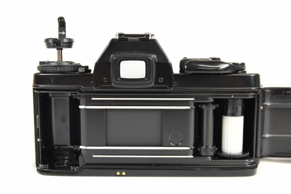 シャッターはチタン製横走りフォーカルプレーンシャッターを採用。機械式制御(1/2000〜1/75秒)と電子式制御(1/60〜125秒)のハイブリッド設計により、電池が切れても5段階のシャッター速度(1/2000、1/1000、1/500、1/250、1/75秒)で撮影可能という実用性を備えていました。Nikon F3が電池切れ時に1/60秒の1速度のみしか使えなかったのに対し、これは大きなアドバンテージでした。