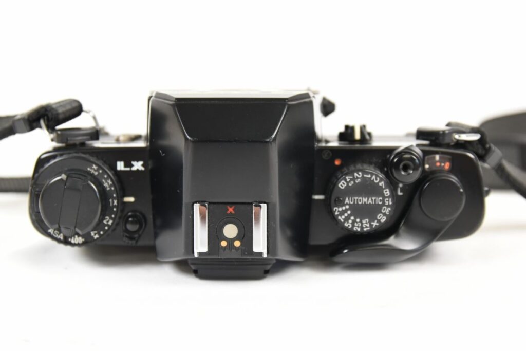 1980年代初期に製造された初期型。ISO感度ダイヤルが1600までで、シャッターボタンにロックカラーがない個体。チタン製シャッター幕とIDM測光システムを搭載し、防塵防滴構造を実現した記念すべき初代モデルです。