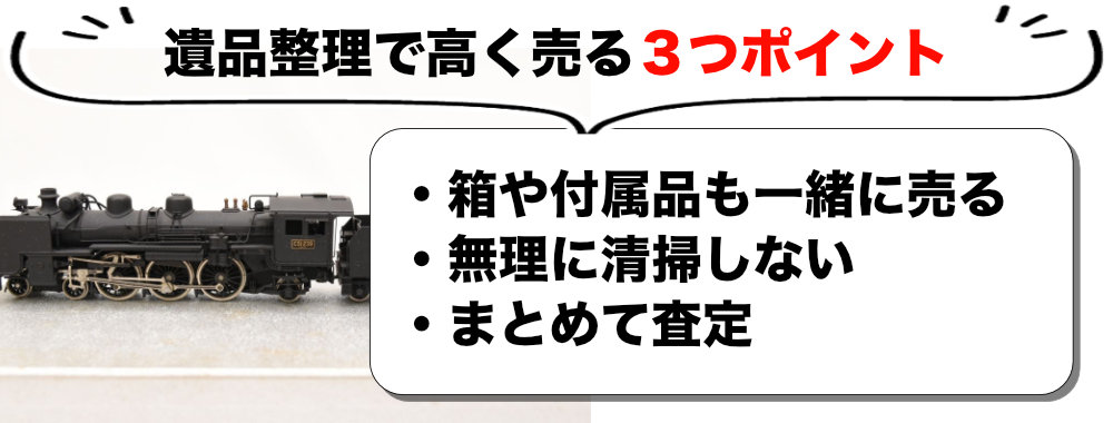 古い鉄道模型は、ご家族の大切なコレクションだった可能性が高いものです。遺品整理の際は以下の点にご注意ください。