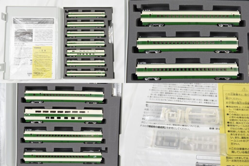 当店の査定士は、車両の形式番号や特徴から「これは基本セット(98603)の○号車」「これは増結セットB(98605)の2階建て車両」と判別できます。バラバラの状態でお持ちいただいても、当店で仕分けを行い、どのセットの車両が何両あるか、欠品はどれかを正確に確認いたします。