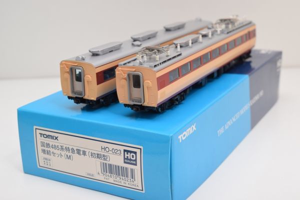 TOMIXのHO-023は、485系初期型のモハ484形(M)とモハ485形を含む増結セットです。HOゲージならではの精密なディテール再現が特徴で、以下のような要素が丁寧に表現されています。