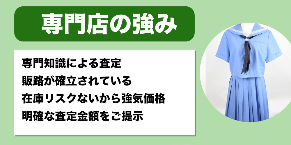 近所のリサイクルショップに持って行ったら「制服は買取できません」と断られました。専門店だと何が違うんでしょうか?
