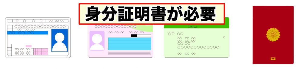 必要なもの: 身分証明書(運転免許証・パスポート・マイナンバーカード・保険証など)