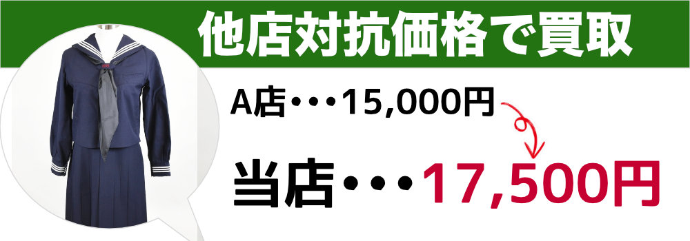 一般の買取店では、制服は素材・ブランド・学校の知名度を問わず「中古の古着」として一律評価される傾向があります。大妻中学高等学校の制服のように、伝統校ブランド・希少なセーラースタイル・都心一等地の学校という付加価値は、専門知識がなければ査定に反映できません。その結果、500円〜1,000円程度の査定になるケースが実際に起きています。