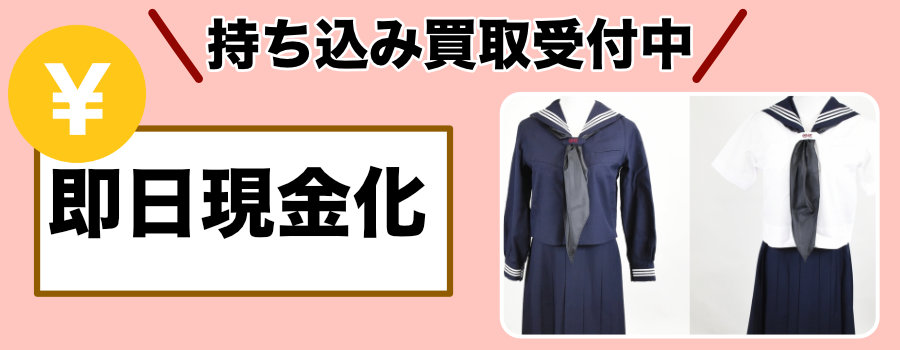 宅配買取(送料無料)はもちろん、神奈川県川崎市の店舗への持ち込みによる学生服の買取にも対応しています。「制服売るなら専門店へ」という選択が、卒業生の皆様にとって最も賢明な選択です。持ち込み買取ならその場で査定して金額に満足できたら即日現金化できます。