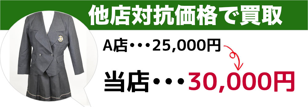 制服人気の高い学校ほど、中古制服買取価格も高くなる傾向にあります。制服売るなら、専門店の当店にお任せください。まずは査定だけでもお試しください。