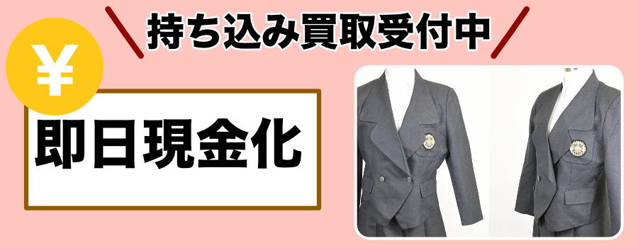 制服買取持ち込みの最大のメリットは、即日現金買取ができることです。宅配買取の場合は、発送から査定、入金まで数日かかりますが、持ち込みなら査定後その場で現金をお渡しします。「すぐに現金化したい」「実際に店舗を見てから決めたい」という方には、制服買取持ち込みがおすすめです。