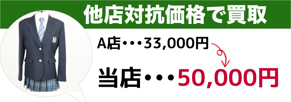 別の制服買取専門店に先に査定を出したところ、セットで6万円という金額が出ました。御社の方が低ければそちらで売ろうと思っているのですが、他店対抗はしていただけますか?ちなみにその店はLINEで写真を送っただけの事前査定です。