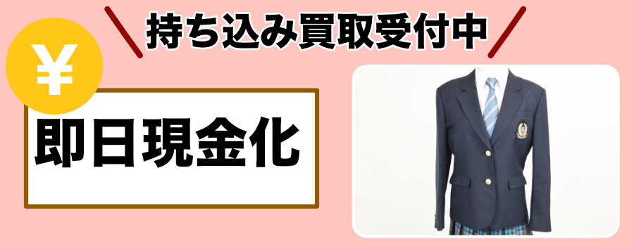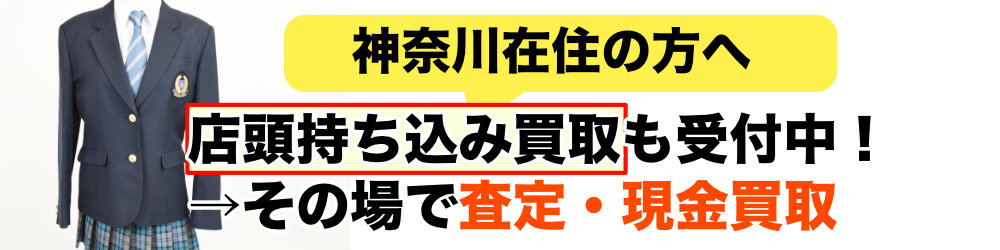 神奈川県にお住まいの方には、宅配買取に加えて店舗への持ち込み買取もご利用いただけます。制服を実際に見ながら査定を受けられるため、その場で金額を確認でき、納得いただければその日のうちに現金でお受け取りいただけます。