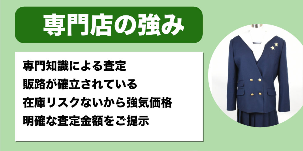 一般のリサイクルショップとの違いを具体的に挙げると、まず販路の広さが挙げられます。当店は国内外の就実高校の制服を必要としている方々への販売ルートが確立されており、高く売れる分だけ高く買えるという仕組みが整っています。次に、査定の精度です。就実高校の制服のどのアイテムが価値を持っているかを熟知しているため、ブレザー1着でも適正な価格評価が可能です。さらに、事前査定と本査定のずれがほとんどなく(95%以上のケースで一致)、送ってから「思ったより安かった」という事態になりにくい点も大きな違いです。