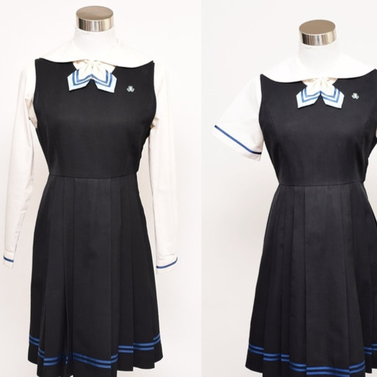 瀧野川女子学園では、現在の黒ボレロ&ジャンパースカートのデザインになる前に、全く異なるデザインの制服が使用されていました。この旧制服も買取対象となっており、特に卒業生の方からのお問い合わせをいただいております。