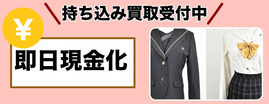 宅配での買取が一般的ですが、当店では川崎駅から徒歩10分の店舗への制服買取持ち込みにも対応しています。持ち込みの最大のメリットは即日現金払です。査定が完了したその場でお渡しします。発送の手間もなく、梱包材を用意する必要もありません。